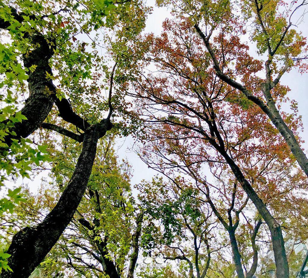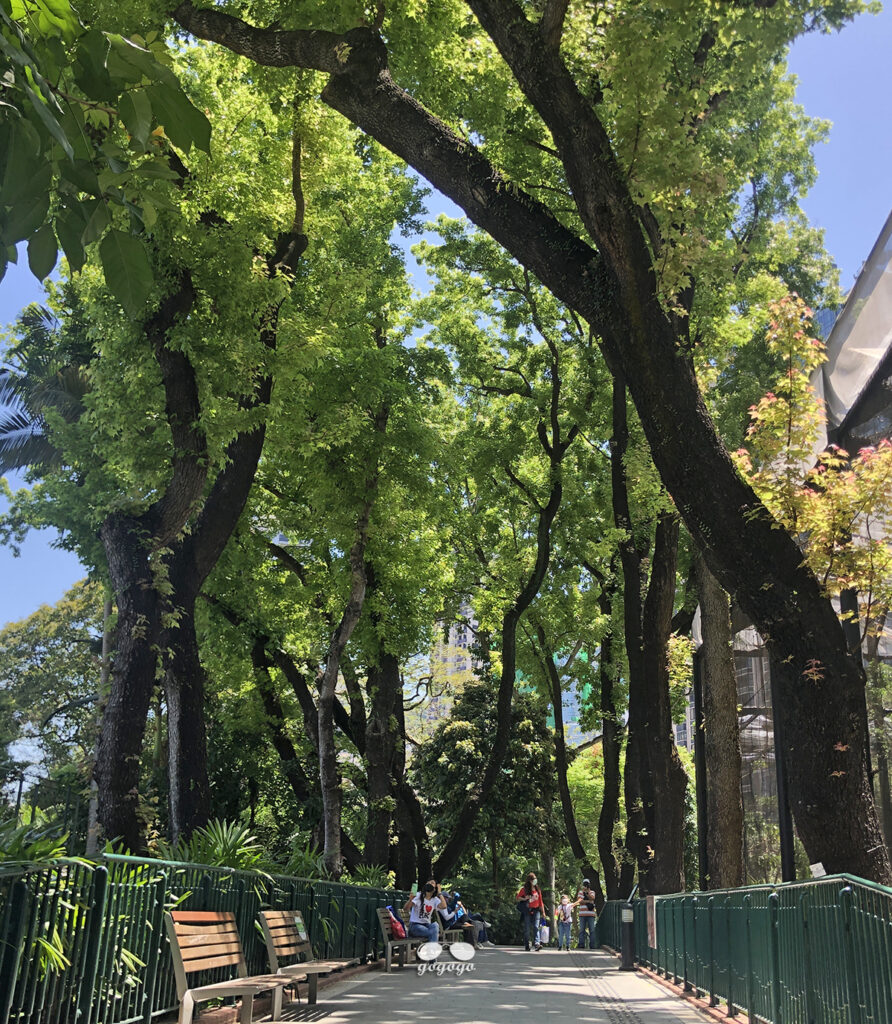 從噴水池上一層就見到一條林蔭大道,在夏天除了提供陰涼的樹蔭外,到了秋冬天時,還是紅葉之地。不過這兒的紅葉比較不「平易近人」,高到只能仰望,未能合照。