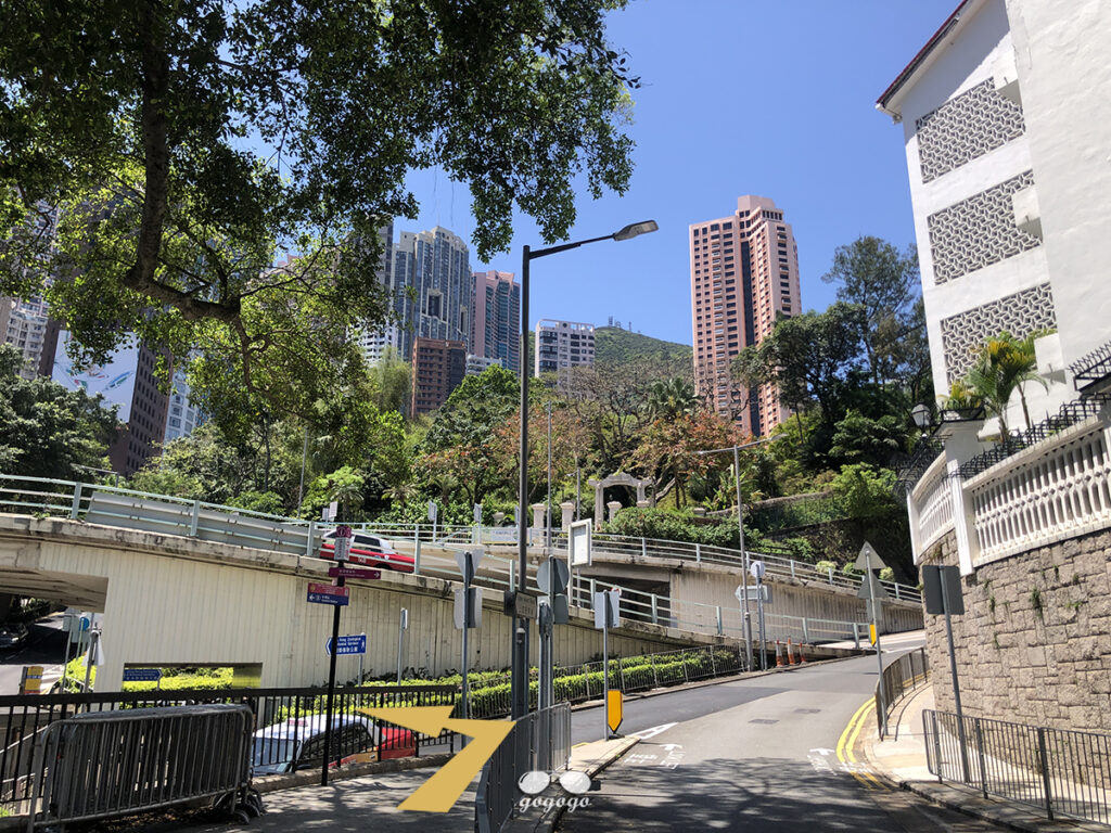 到咗上亞厘畢道,過馬路然後穿過隧道。但因為上亞厘畢道無紅綠燈,要小心睇車。