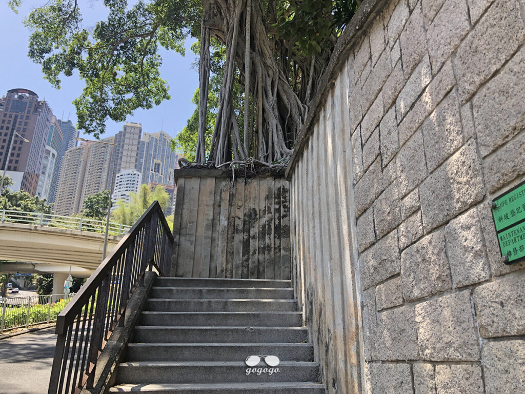 上完樓梯,就到兵頭花園喇,係咪好快呢?