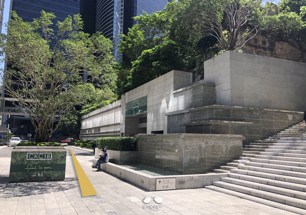 穿過匯豐底部,就見到長江中心花園個入口,行去左手邊有扶手電梯上。