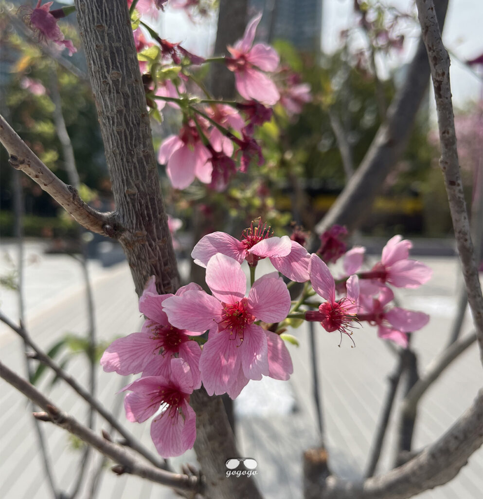 向前行數分鐘,會見到兩幢大樓,中間的位置就種了數株櫻花。